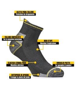 15 paia di calza corta antinfortunistica ideali per il lavoro, lo sport ed il tempo libero. Le calze da lavoro "WRK05" sono confortevoli, elasticizzate, ergonomiche, resistenti e traspiranti. Possiedono un tallone rinforzato per la massima protezione ed un rimaglio piatto per garantire il confort. Le calze da lavoro WRK dispongono di un tessuto a nido d'ape perfetto per donare la massima traspirazione. Presentano un elastico stringi piede per la massima aderenza, senza stringere. I calzini corti sono dotati di sottopiede in spugna in grado di proteggere la pianta del piede e di polsino piquet. Le calze da lavoro antinfortunistica di WRK sono realizzate dal 75% cotone, 21% poliestere e 4% elastane.