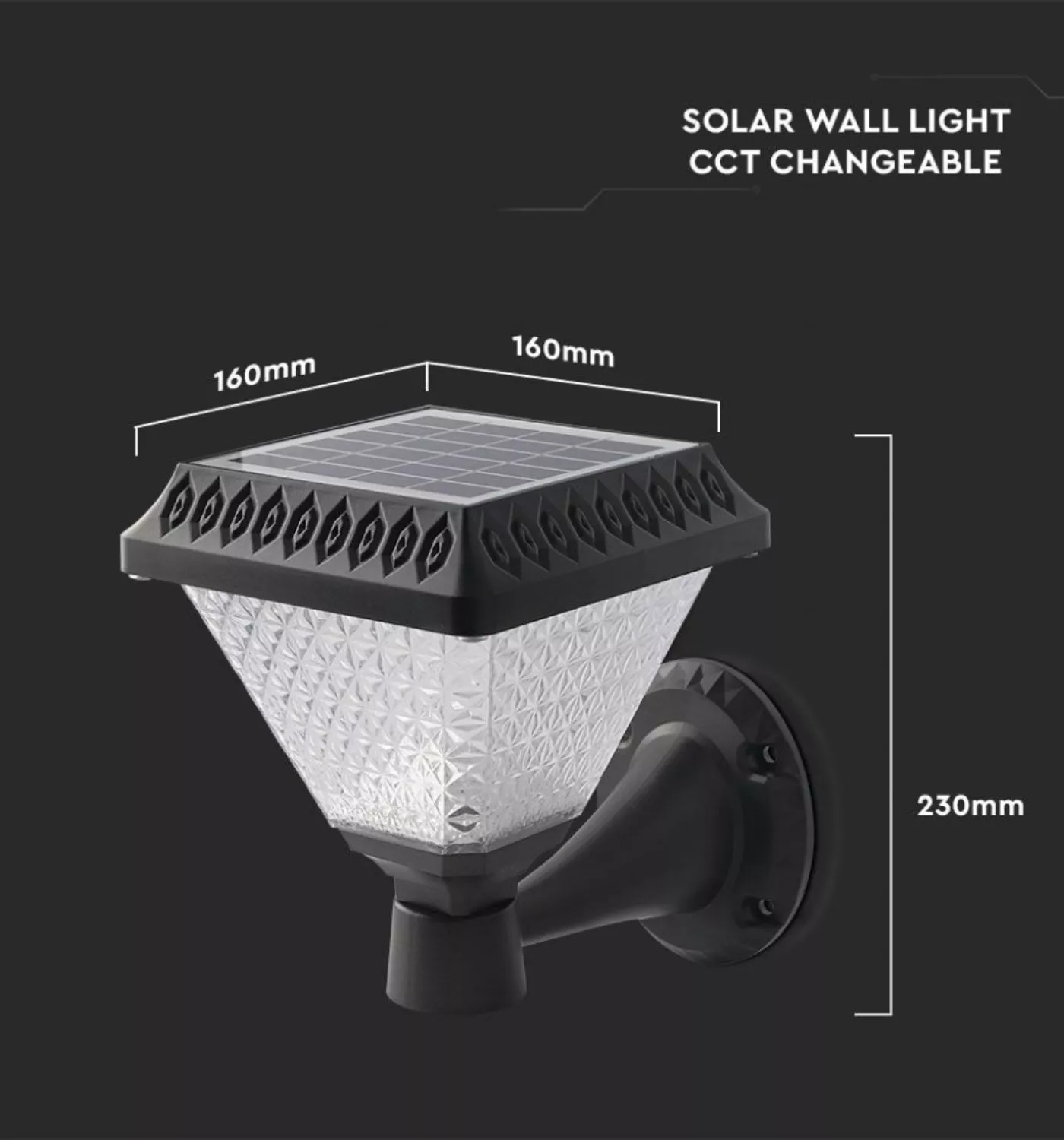 Applique led solare vtac nero a piramide con telecomando 3in1
