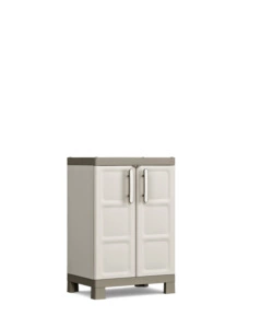 Armadio in resina a 2 ante con il suo design moderno e i colori tenui di beige e grigio talpa, questo armadio si integra perfettamente in qualsiasi ambiente, sia all'interno che all'esterno della tua casa. All'interno, trovi 4 ripiani regolabili che supportano fino a 15 kg ciascuno. È progettato per offrire anche praticità e sicurezza. È rialzato su 4 piedini con angoli smussati, che assicurano stabilità e protezione del pavimento. Inoltre, puoi chiuderlo con un lucchetto, rendendolo una scelta sicura per riporre oggetti anche all'aperto. L'assemblaggio è incredibilmente semplice e veloce: in soli 15 minuti, avrai il tuo armadio pronto all'uso, senza complicazioni. Se hai bisogno di espandere lo spazio di archiviazione, puoi facilmente collegarlo ad altri armadi Keter grazie al sistema di giunzione integrato.