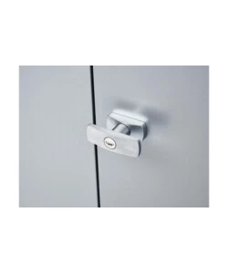 La chiusura a 3 punti con cilindro e maniglia girevole assicura la massima sicurezza, mentre i materiali di alta qualità, come l'acciaio zincato a caldo e verniciato a forno, garantiscono resistenza e durata nel tempo. Inoltre, grazie alla sua costruzione robusta e senza necessità di manutenzione, l'armadio per attrezzi "Romeo" è un investimento sicuro che offre tranquillità per molti anni, supportato da una garanzia di 20 anni.