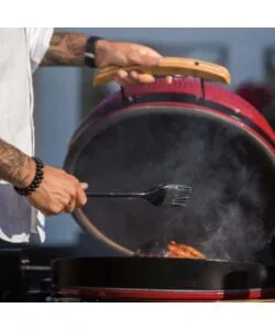 Barbecue a carbone kamado bono "limited 25" in ceramica rosso con rotelle 83x70x90 cm