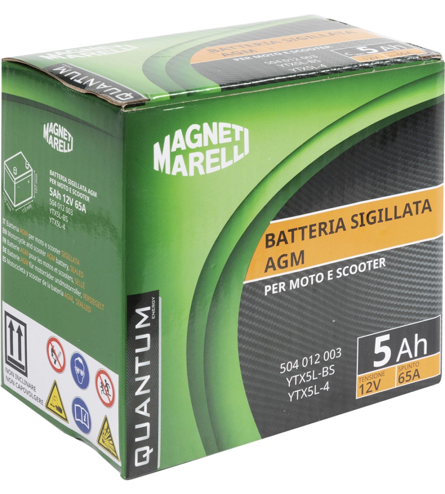 Magneti marelli batteria moto e scooter tecnologia 5ah 12v 65a agm sigillata polo positivo destro