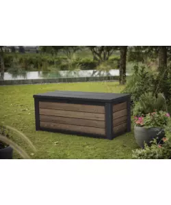 Baule da esterno keter "deco box 150g" in resina marrone effetto legno 570 lt 151,7x72,5x70 cm