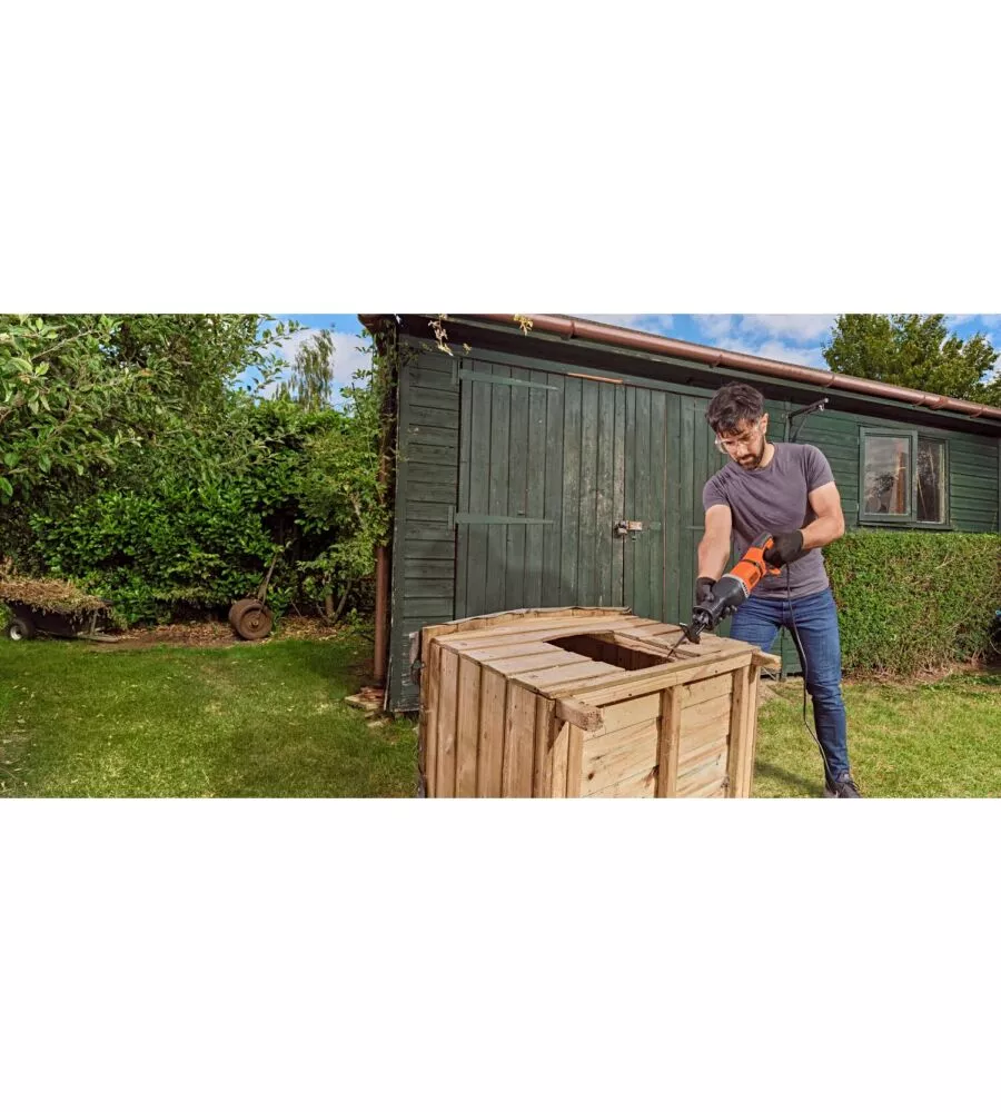 La sega a gattuccio a filo 750W è uno strumento compatto, ergonomico e potente, ideale per una varietà di applicazioni sia indoor che outdoor. Grazie alla sua versatilità, è perfetta per il taglio di legno, metallo e PVC all'interno della casa, ma anche per lavori di giardinaggio come la potatura degli alberi. Il design maneggevole, con doppia impugnatura e corpo ergonomico, garantisce un comfort ottimale durante l'uso. La scarpa regolabile si adatta facilmente a ogni tipo di applicazione, mentre i morsetti blocca-ramo removibili offrono ulteriore flessibilità. Con una potenza di 750W e una velocità di 0-2.800 corse/min, questa sega è in grado di tagliare legno fino a 150 mm e acciaio fino a 100 mm. Il cambio della lama è rapido e senza necessità di attrezzi, e la lunghezza del cavo di 3 metri consente ampio movimento.