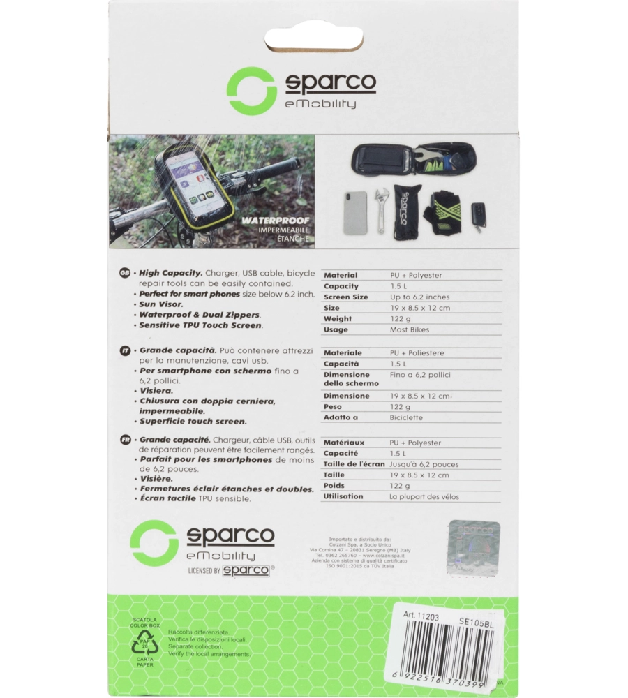 - Borsa porta cellulare per bici Sparco con doppia cerniera sigillata