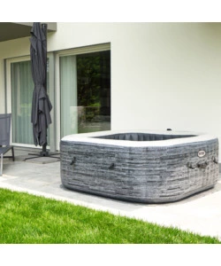 PureSpa Greystone Deluxe di Intex è l’idromassaggio gonfiabile quadrato perfetto per trasformare il tuo giardino in un’oasi di benessere. Il suo design raffinato con texture effetto pietra grigia lo rende unico ed elegante, perfetto per integrarsi armoniosamente in qualsiasi ambiente esterno.