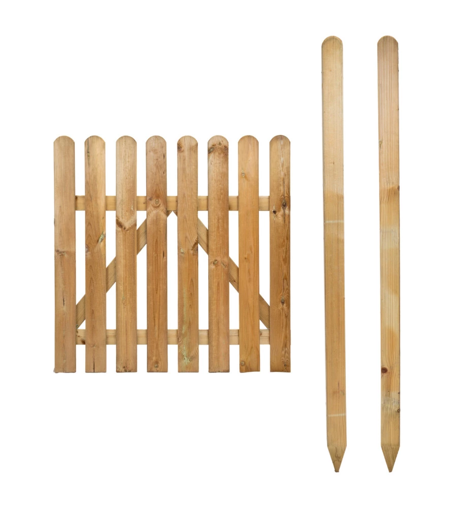 Cancello da esterno in legno completo di ferramenta e pali 90x16x150 cm