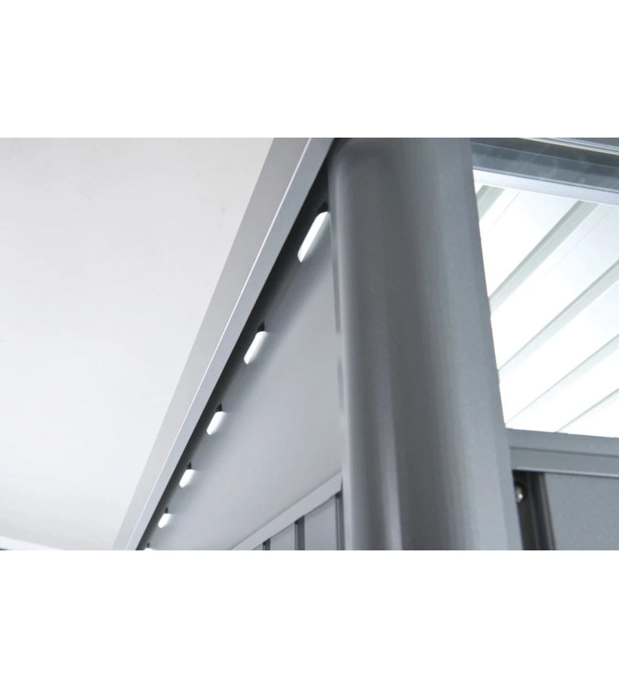 La casetta per attrezzi è realizzata in acciaio zincato a caldo, un materiale di alta qualità, garantito per 20 anni. Lo spessore delle pareti della casetta in lamiera zincata vanta uno spessore di 0,5 mm, il doppio rispetto a quanto si trova solitamente in commercio. La struttura in acciaio zincato a caldo e la verniciatura a forno poliammidica offrono numerosi vantaggi alle casette in metallo della linea AvantGarde: sono resistenti agli agenti atmosferici esterni (fino a 150 kg/m2 in caso di neve e a 150 km/h in caso di vento), non necessitano di verniciatura e sono ignifughe (standard EN 13501-1, classe A1).