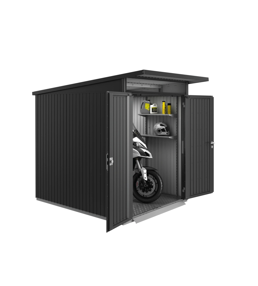 Le casette in acciaio zincato "Avantgarde A7" di Biohort sono perfette per creare uno spazio esterno in cui riporre tutta la tua attrezzatura da giardino o auto, le biciclette o anche per creare un luogo in cui riparare la tua motocicletta.