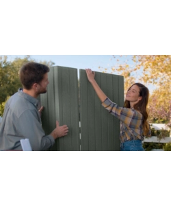 Le casette da giardino della linea Darwin sono realizzate in EVOTECH+, una resina resistente che riproduce la finitura del legno naturale, alla vista e al tatto. Grazie alla struttura con pareti a doppio strato e struttura interna rinforzata in metallo, la casetta da esterno è in grado di resistere alla pioggia e alla neve (fino a 75 kg/m2).