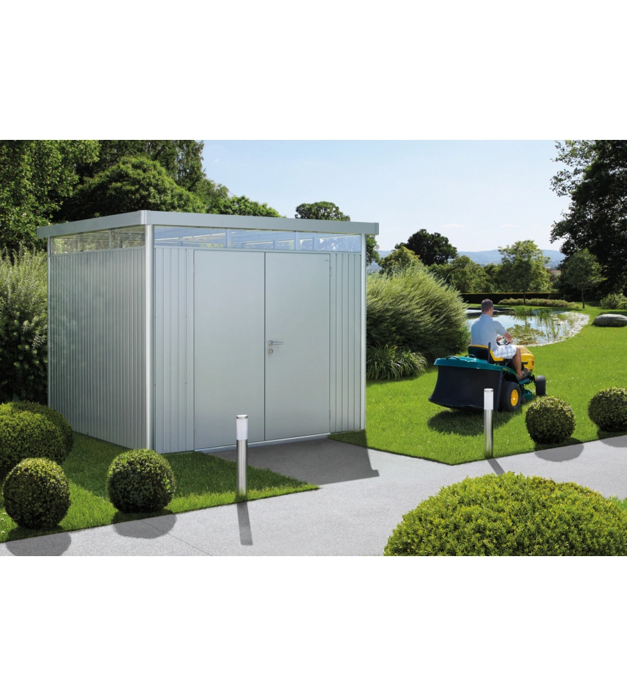 Casetta da giardino biohort "highline h4" in acciaio zincato colore argento metallizzato con porta battente doppio 275x275x222 cm - cod. 83059
