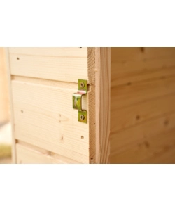 Dotata di una porta singola di dimensioni 0,80 x 1,74 m, questa casetta da giardino è certificata FSC, a garanzia della sostenibilità del legno utilizzato. Per garantirne la durata nel tempo, è necessario trattarla con una vernice antimuffa e antitarme subito dopo l'assemblaggio, sia all’interno che all’esterno.