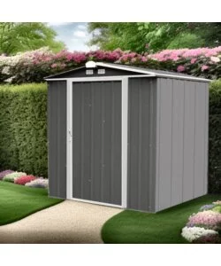Con una superficie utile di 2,30 mq, la casetta ha dimensioni esterne di 1.772 x 1.575 x 1.829 m e interne di 1.676 x 1.372 x 1.803 m, che consentono di ottimizzare lo spazio disponibile. La porta ad apertura singola, con una larghezza di 78,7 cm, facilita l'accesso anche a strumenti e attrezzature di medie dimensioni. Il colore antracite e panna aggiunge un tocco elegante e sobrio, perfetto per integrarsi in qualsiasi ambiente esterno.
