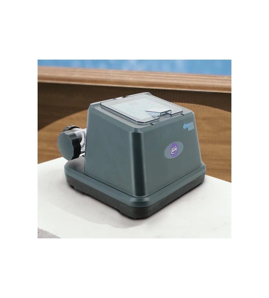 Il clorinatore salino per elettrolisi genera cloro per mantenere l'acqua della piscina pulita e disinfettata utilizzando il sale. Questo metodo offre diversi vantaggi: produce e rilascia automaticamente il cloro nell'acqua della piscina, eliminando la necessità di immagazzinare e maneggiare prodotti chimici. Inoltre, utilizza solo sale comune, rendendolo un'opzione sicura e conveniente. Il clorinatore salino di Gre è dotato di un display LCD retroilluminato, in grado di offrire un controllo digitale, e di un timer per la gestione della disinfezione. Con una protezione IPX4 per l'uso esterno, il clorinatore può essere utilizzato in tutta sicurezza all'aperto.