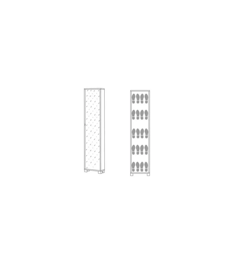 Armadio scarpiera olmo con anta a specchio, 43x190x18 cm