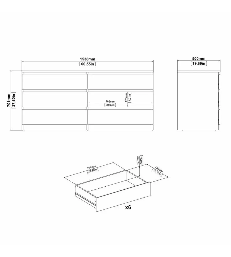 Cassettiera 6 cassetti "naia" bianco lucido 153,8x50x70,1 cm