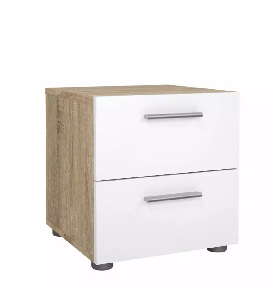 Comodino 2 cassetti "pepe" rovere e bianco lucido 40x40,2x42,3 cm