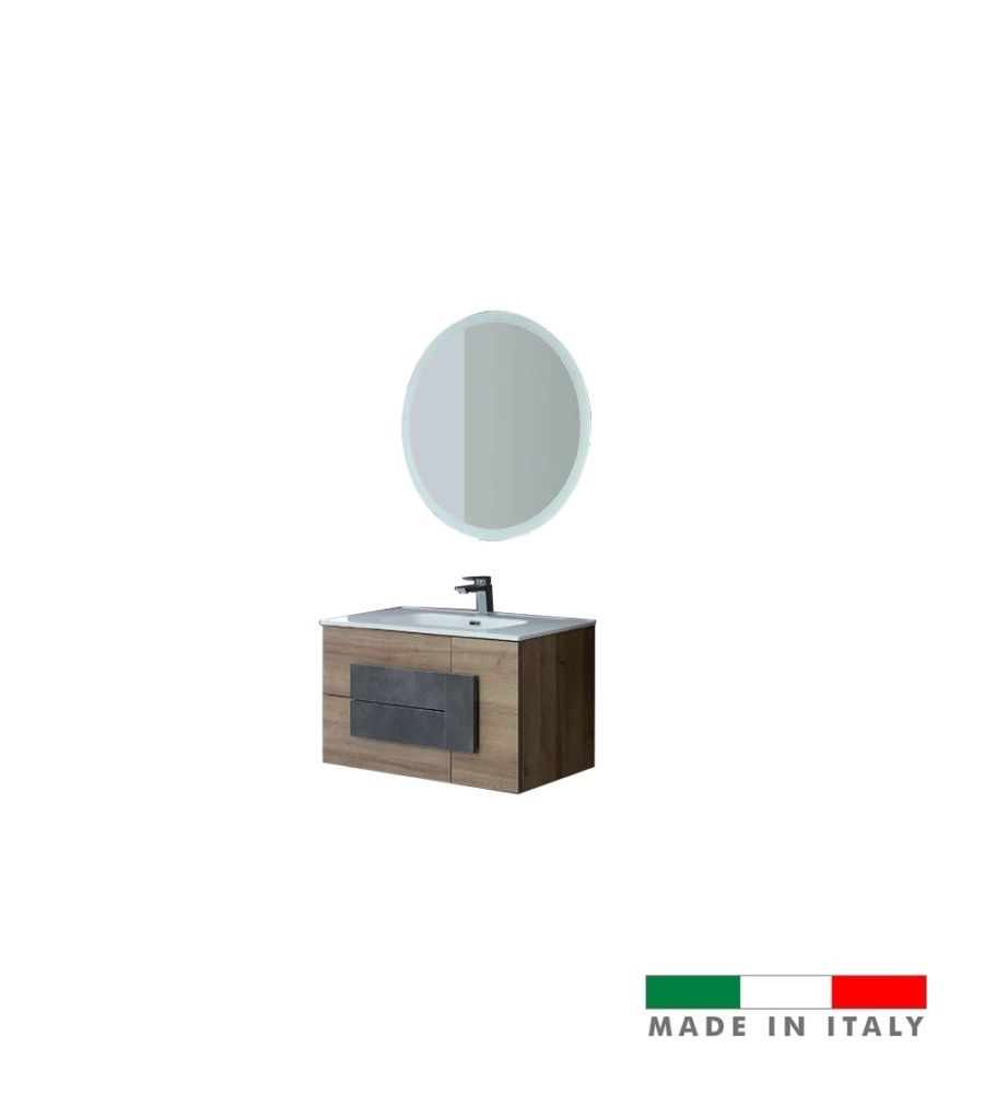 Mobile bagno sospeso "urban" con specchio e cassetti, 80x47x49 cm