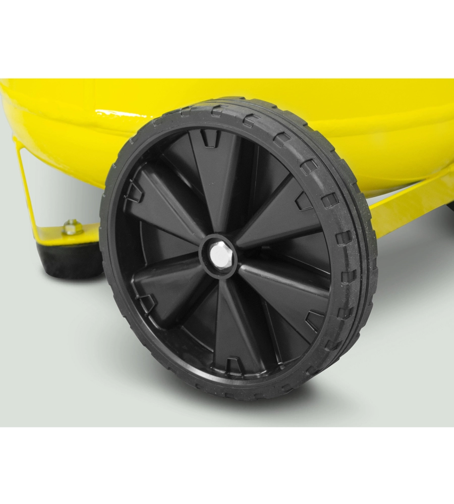 Il serbatoio verticale salvaspazio da 50L permette un ingombro minimo, ideale anche per ambienti ristretti. Dotato di grandi manometri ben visibili, doppio piede fisso per stabilità durante l’uso e grandi ruote per un trasporto agevole. La maniglia ergonomica ne facilita ulteriormente lo spostamento. Con una silenziosità di 59 dB, è perfetto anche per ambienti chiusi o dove è richiesto un basso livello di rumorosità.
