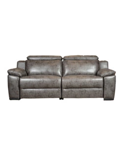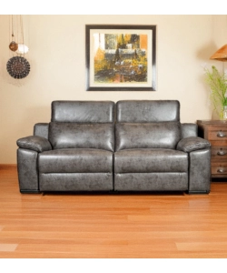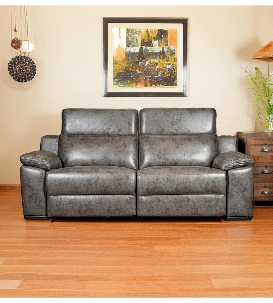 Divano 3 posti BellaHome "Giulia" con sistema relax, in ecopelle effetto invecchiato grigio 210x106x85 cm.