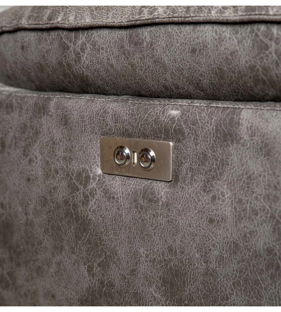 La funzione relax del divano è elettrica e si attiva tramite i tasti posti ai lati. Il pulsante anteriore attiva la funzione relax, reclinando lo schienale e alzando il poggiapiedi per offrire una posizione comoda e rilassante. Il tasto posteriore riporta il divano alla posizione seduta. Inoltre, al centro è presente una porta USB, che consente di caricare dispositivi come telefoni, tablet e altri elettronici.