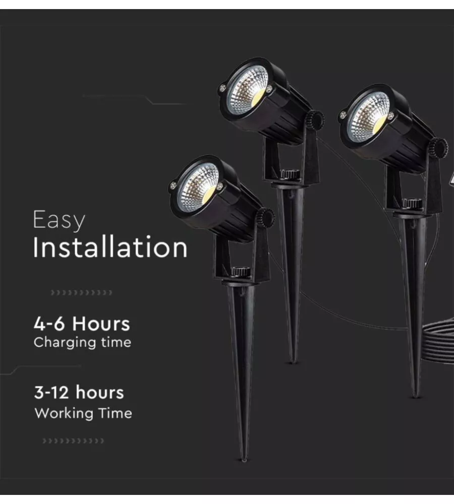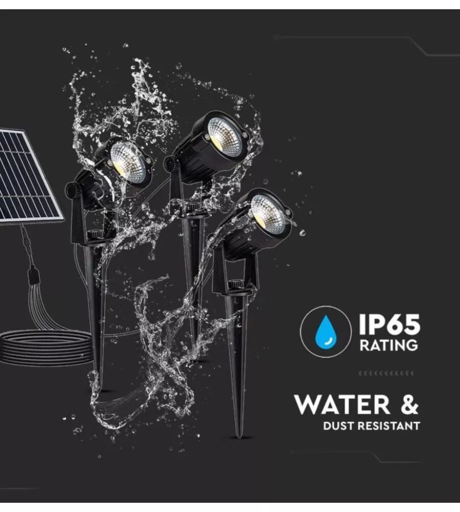 Faretto led solare da esterno con picchetto vtac nero 3000k 3 pezzi