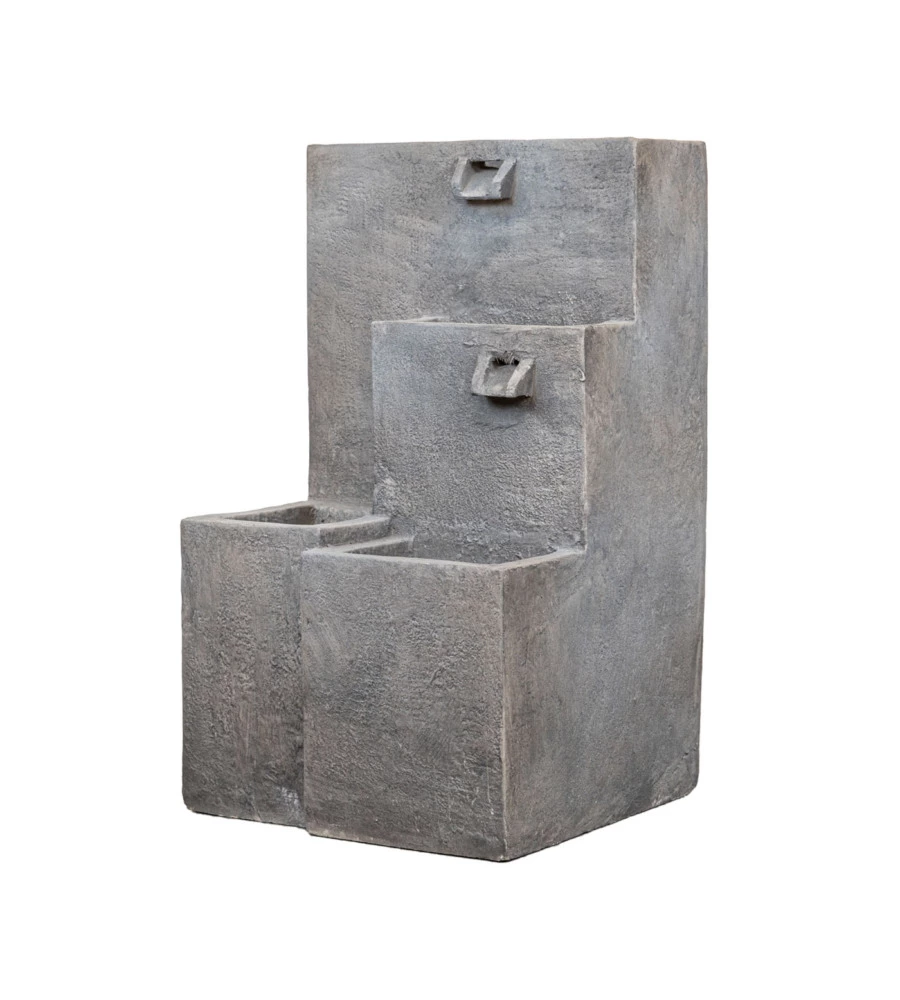 Fontana da esterno a due vasche con portavaso e pompetta per ricircolo acqua 42x40x70 cm