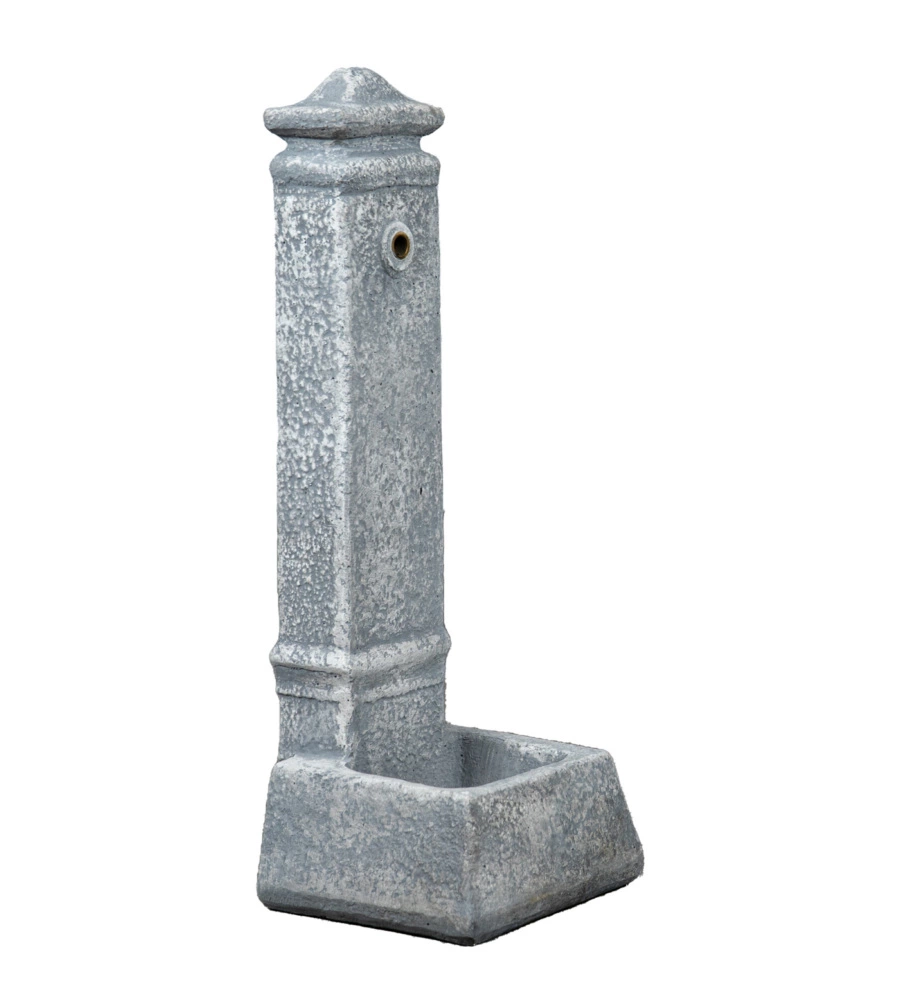 Fontana da giardino a muro "Adige" anticato colore grigio, 40x40x92 cm.
