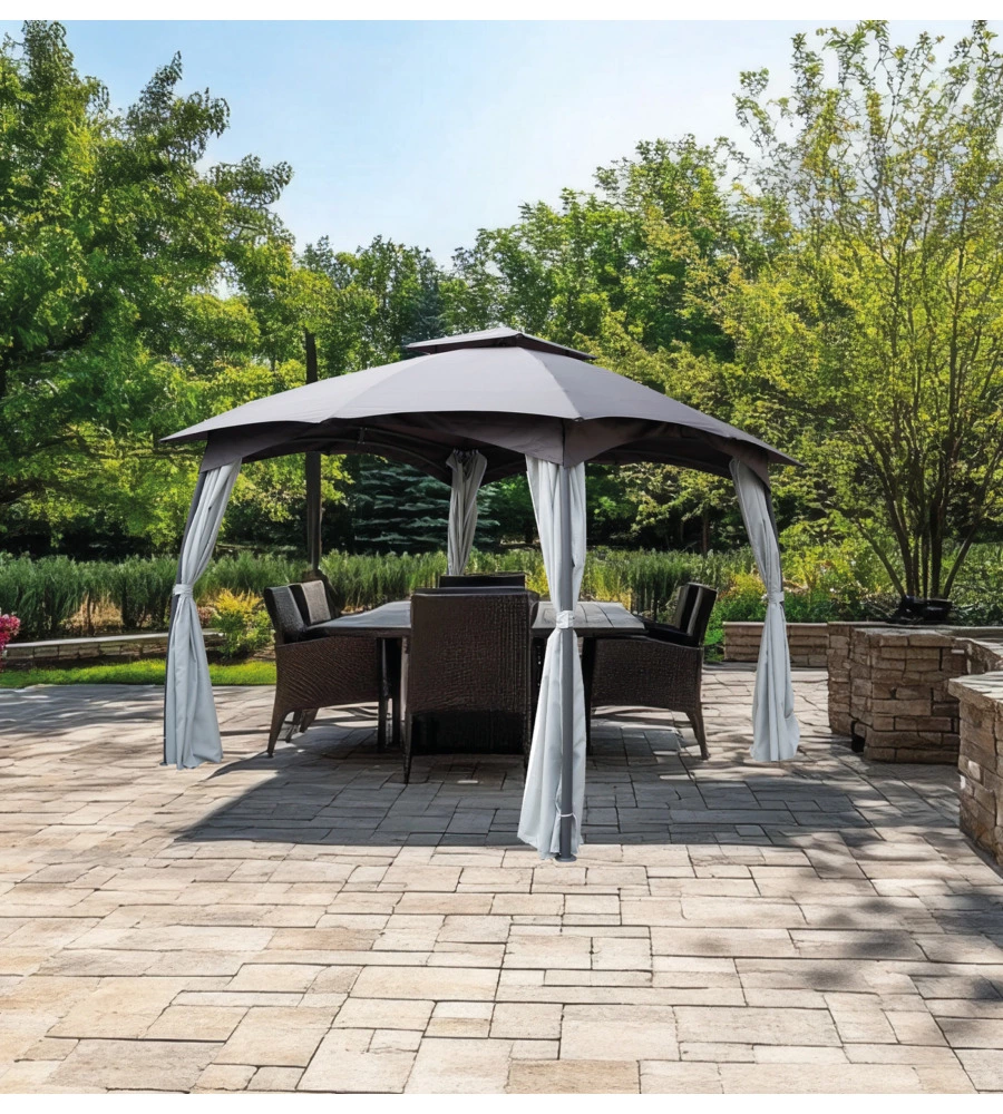 Gazebo da esterno con doppio tetto eurogarden "berlino" in acciaio grigio 3x3 m