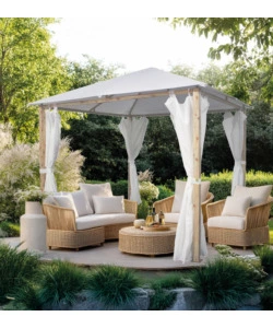 Gazebo da esterno con tende laterale eurogarden "trento" in alluminio effetto legno 3x3 m