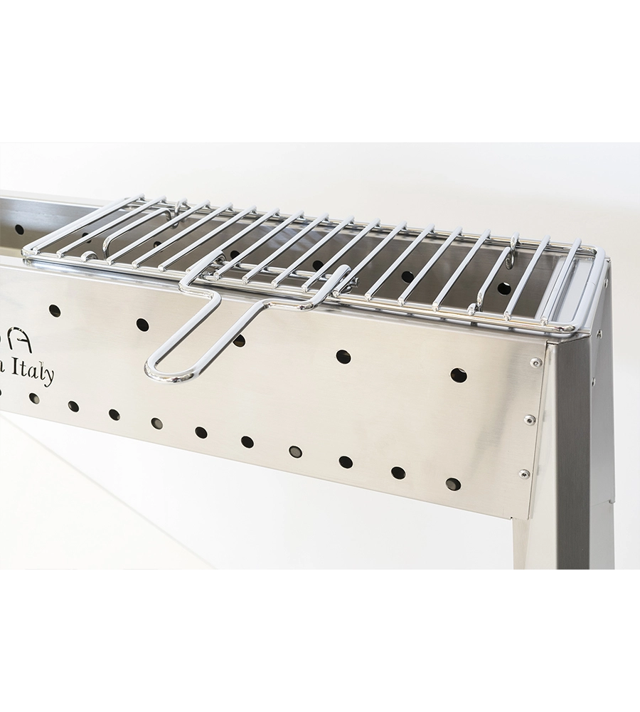Griglietta per cuocispiedini in ferro cromato con manico, 37x13 cm - lisa