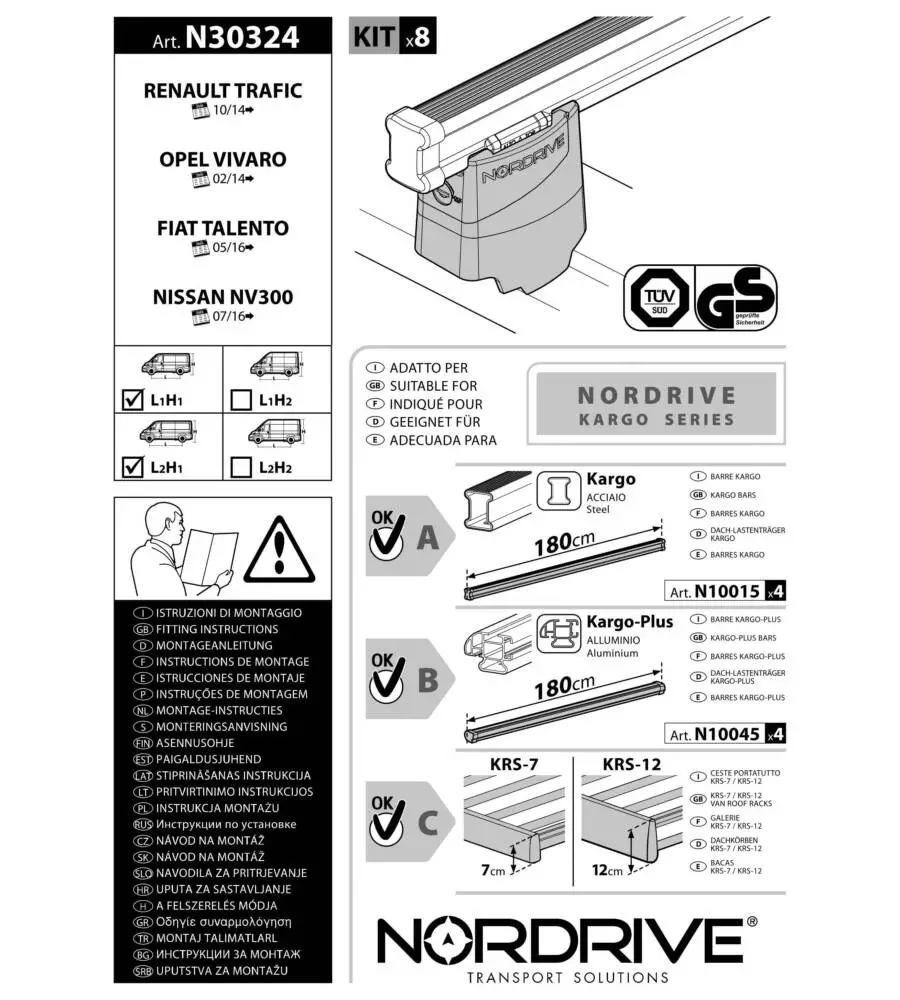 Kit attacchi per barre auto portatutto renault trafic, opel vivaro 14>,fiat n30324