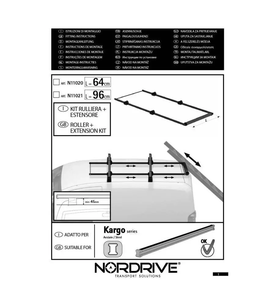 Kit rullo posteriore + estensore regolabile - 64 cm n11020