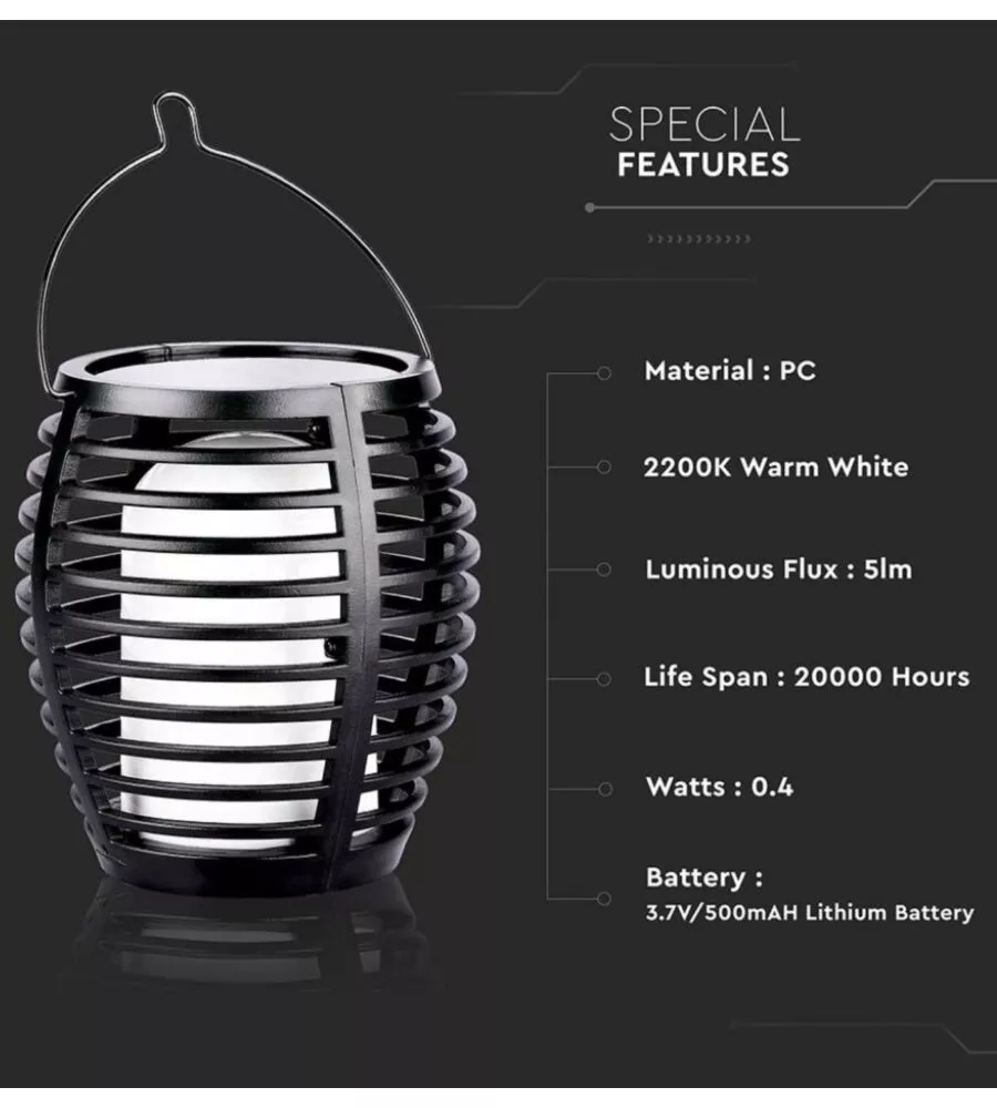 Lampada LED solare da esterno a forma di torcia multi applicabile Vtac nero 2200 K.