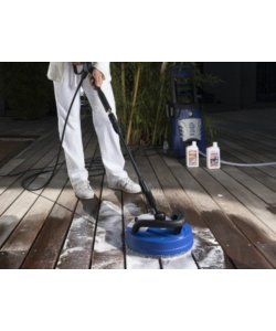 Patio Cleaner Deluxe Chem di Annovi Reverberi è un lavapavimenti per idropulitrici a freddo, ideale per pulire in modo efficace ampie superfici esterne, sia orizzontali che verticali. Dotato di due ugelli asimmetrici rotanti a 360 gradi, garantisce una pulizia uniforme e veloce su patii, balconi, scale, bordi piscina, porticati, pareti e porte di garage. Grazie alle pratiche maniglie, permette di agire senza sforzo anche sulle superfici verticali. Il serbatoio detergente integrato consente di intensificare l’azione pulente, rilasciando automaticamente il prodotto durante il lavaggio. La cover in plastica da 30 cm e le setole lungo il bordo proteggono dagli schizzi, mentre la prolunga lancia inclusa facilita il collegamento alla pistola dell’idropulitrice.