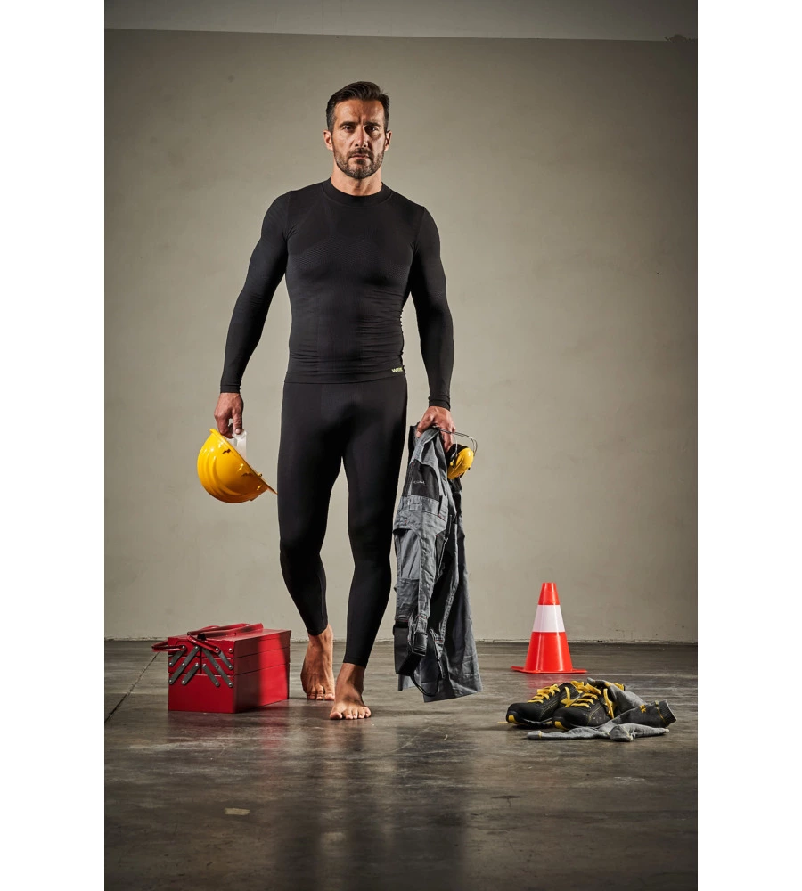 3 pezzi di leggins tecnico da lavoro elasticizzato ed ergonomico. Ideale sia per il lavoro, lo sport ed il tempo libero. Un capo d'abbigliamento batteriostatico, traspirante e resistente. Il leggins tecnico di WRK dispone di sezioni traspiranti per massime performance. Presenta cuciture piatte e sezioni ergonomico con effetto seconda pelle.  Il leggins tecnico è realizzato interamente in Dryarn, un filato innovativo ed altamente performante capace di assicurare il massimo confort, tecnologia e praticità a chi lo indossa. Leggero e traspirante, questo leggins mantiene la pelle sempre asciutta ed è in grado di controllare sudore e vapore fino all'esterno del tessuto. La composizione del leggins "WRK303" è 70% polipropilene, 20% poliammide e 10% elastan.
