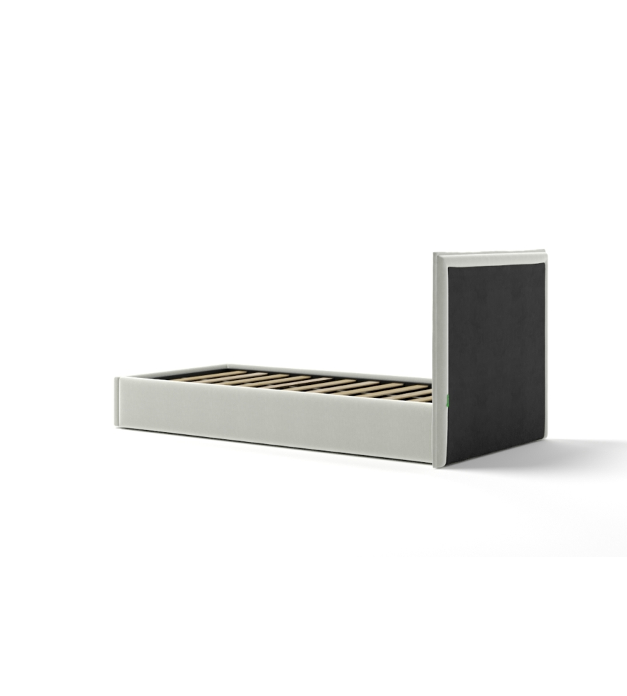Letto singolo "zoom" in tessuto colore bianco con rete e contenitore, 90x190 cm
