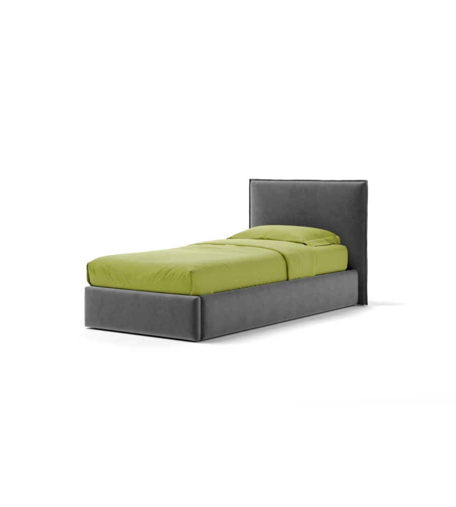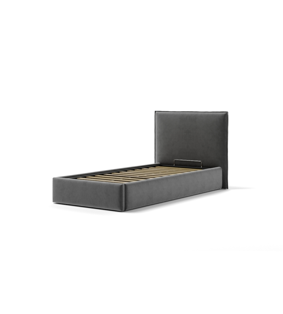 Letto singolo "zoom" in tessuto colore grigio con rete e contenitore, 90x190 cm