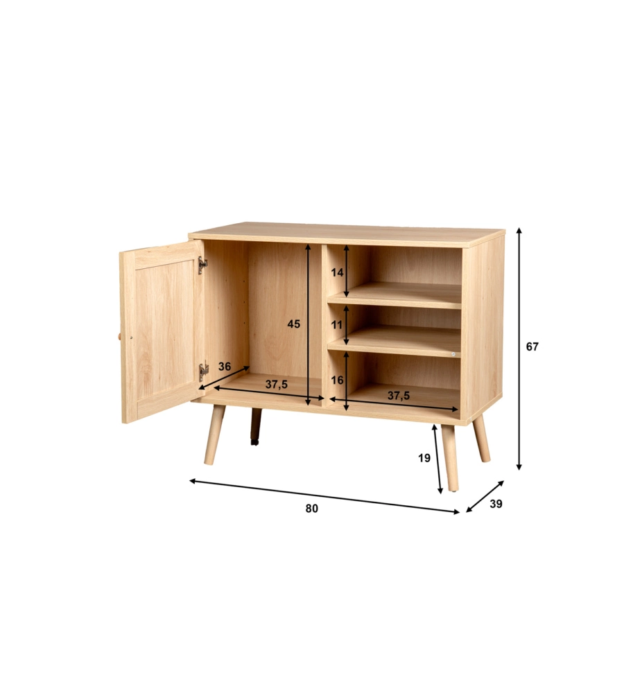 Madia multifunzionale bella home con porta battente in rattan e 2 ripiani 80x39x67 cm