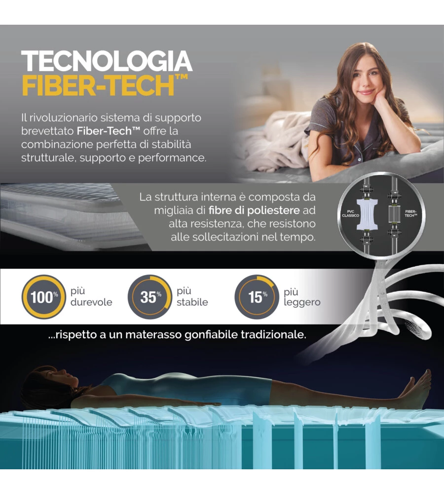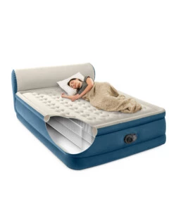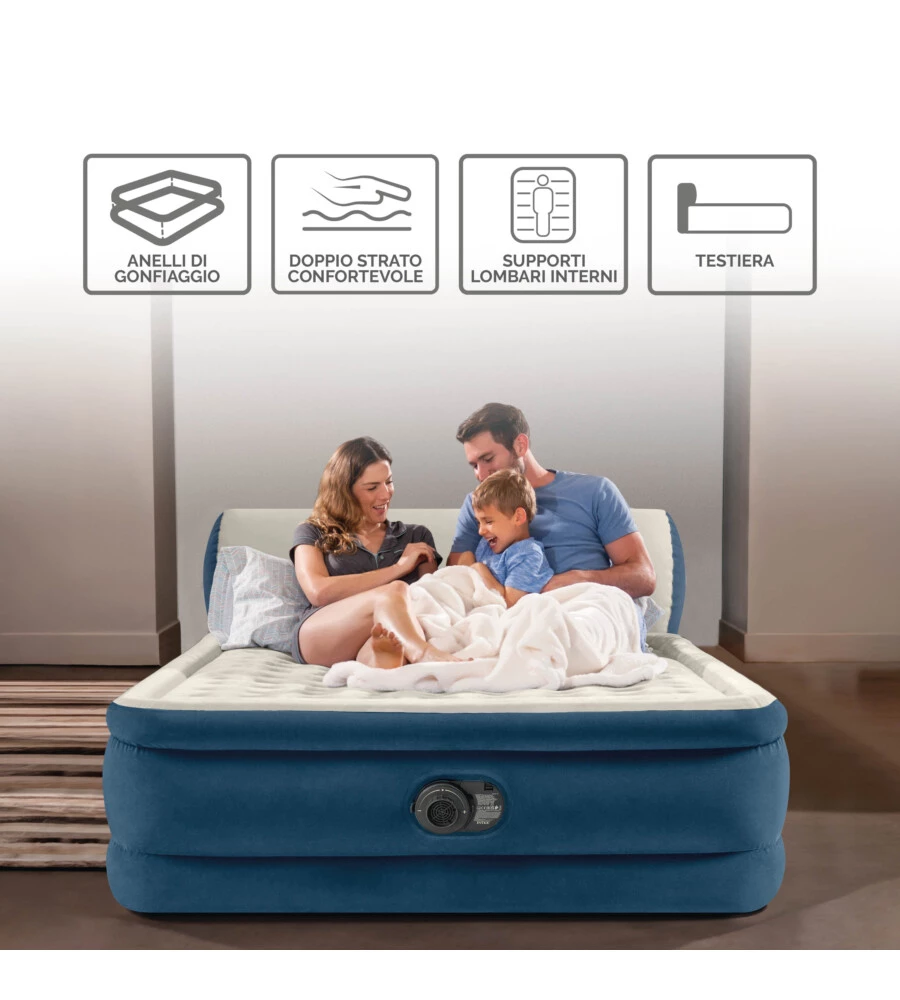 Materasso matrimoniale gonfiabile intex "silky bed" beige e blu con testiera e pompa elettrica integrata 229x152x79 cm - cod. 64460nd