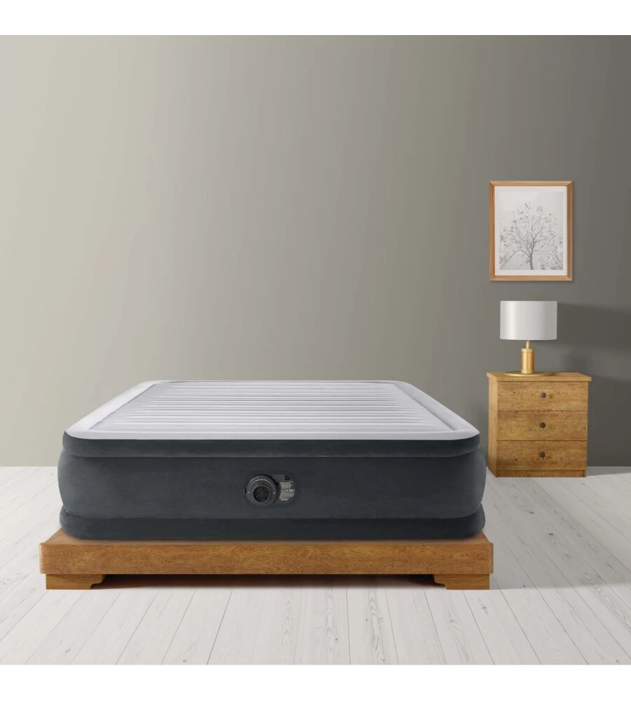 Materasso matrimoniale autogonfiante intex "airbed dura-beam comfort-plush elevated" colore grigio chiaro e pompa integrata 152x203x46 cm - cod. 64414nd