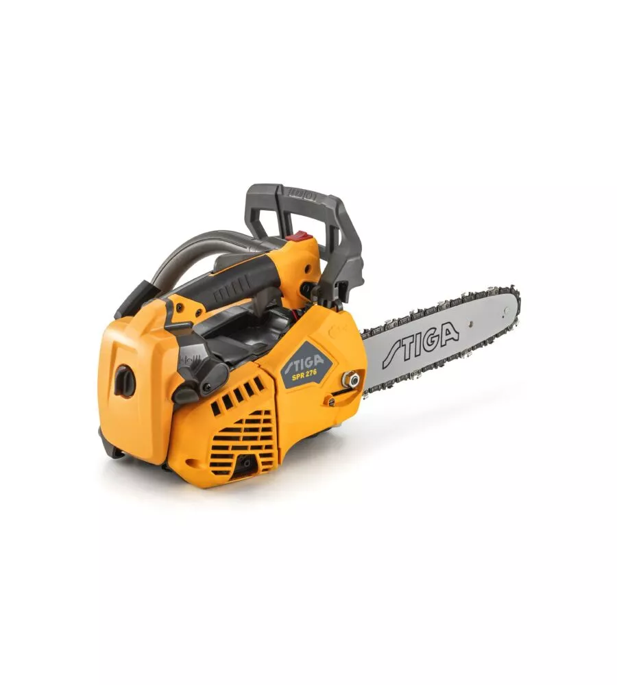La motosega da potatura STIGA SPR 276 è una motosega ben bilanciata, leggera e compatta, ideale per la potatura in totale comfort e manovrabilità. SPR 276 è alimentata da un motore a scoppio da 26,9 cc (0,7 kW), è dotata di una barra da 25 cm, pompa olio automatica e vite di tensionamento laterale. Il sistema antivibrante a molle permette una notevole riduzione delle vibrazioni sulle mani dell'operatore. La pratica impugnatura singola top handle permette l’utilizzo con una sola mano.