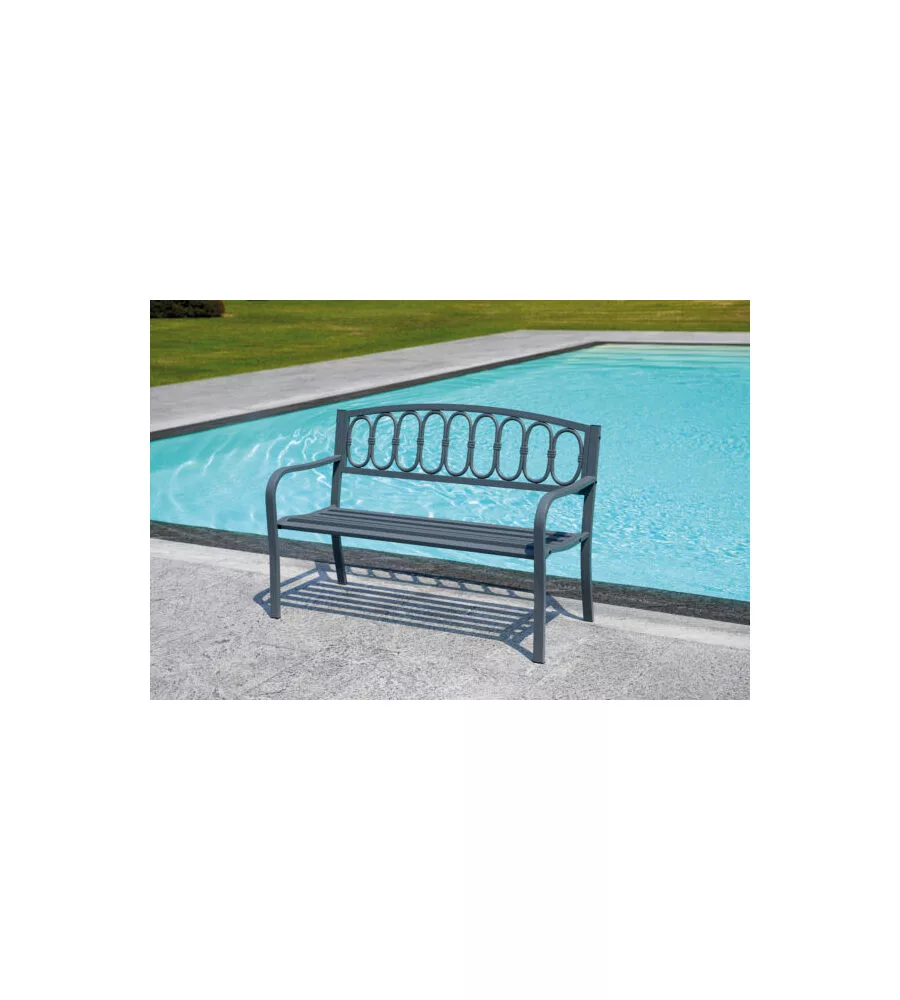 Panchina da esterno solaria in ferro e ghisa antracte 2 posti 127x63x87 cm