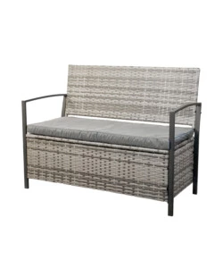 Panchina da esterno eurogarden "maia" in metallo e pe rattan con contenitore e cuscino grigio, 118x58x87 cm