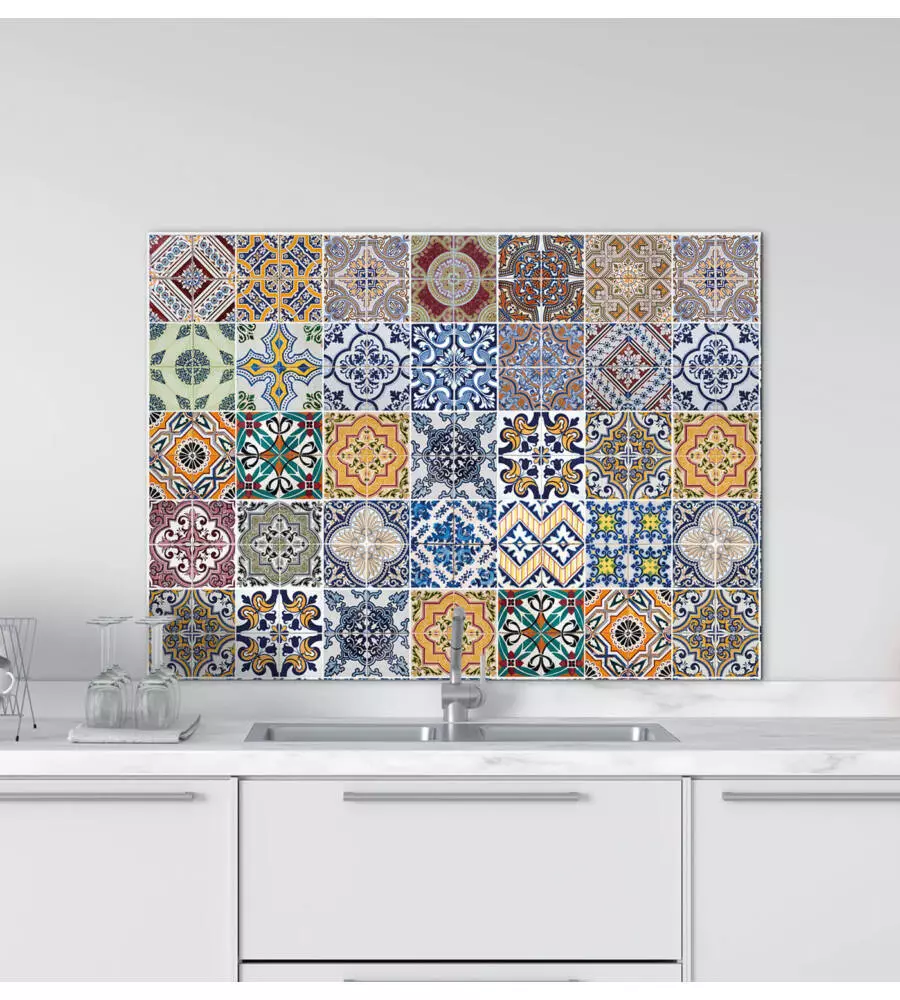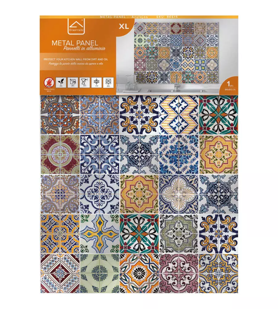 Paraschizzi da cucina in alluminio fantasia "azulejos", 84x60 cm