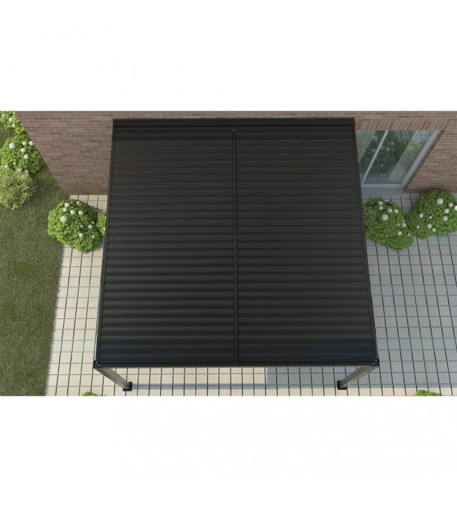 Gazebo pergola bioclimatica da esterno addossata antracite in alluminio- 3x4 m