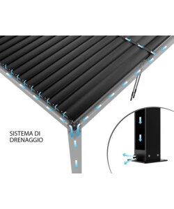 Al contrario, con l'apertura totale delle feritoie è possibile mantenere la luce all'interno della stanza, soprattutto in inverno. Il gazebo è impermeabile e resistente ai raggi UV.