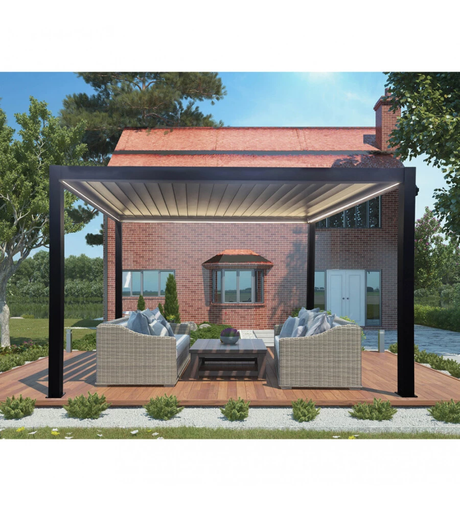 Gazebo pergola bioclimatica da esterno antracite in alluminio, con led e copertura motorizzata - 4x4x2,5 m