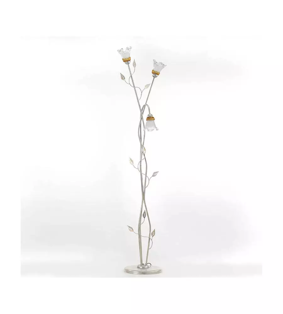 Piantana "Lucrezia" in metallo color avorio e tre paralumi in vetro.
