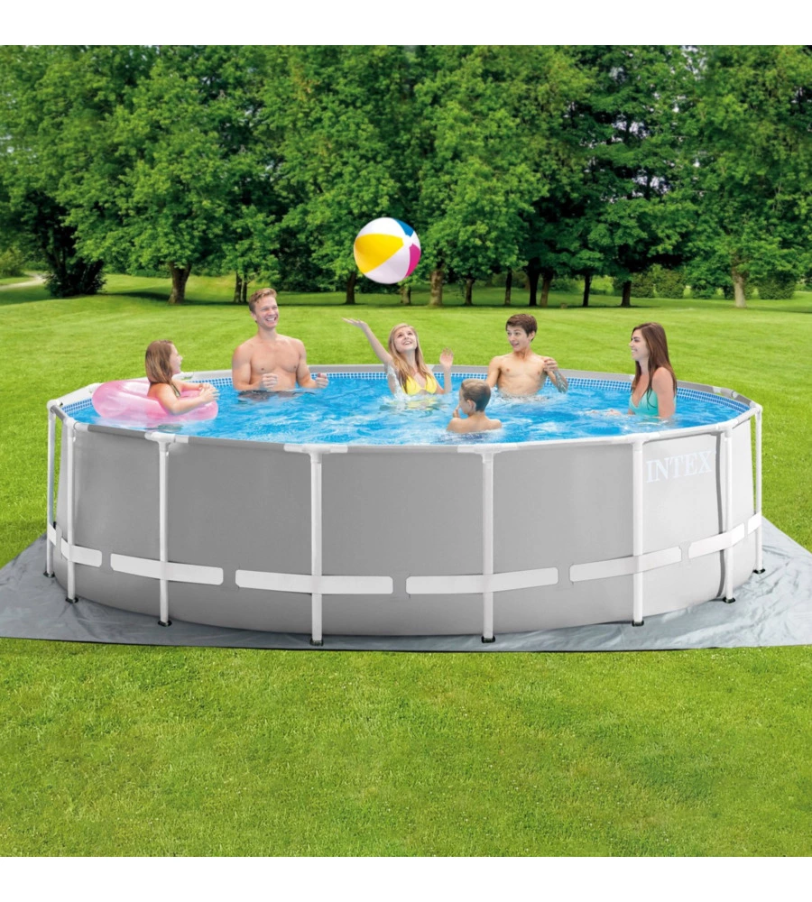 Piscina fuori terra con struttura rotonda intex "prisma frame" grigio chiaro 457x457x122 cm - cod. 26726np